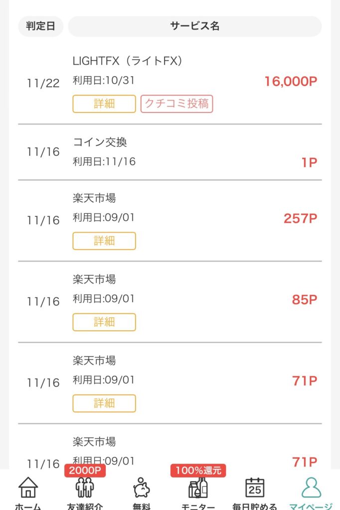 口座開設時に経由したモッピーで無事16000P承認されました!